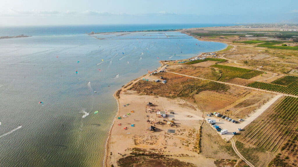La bella Vita (und viel Wind), das findet man am wohl schönsten Spot in ganz Italien – Lo Stagnone in Sizilien. Der flache und ruhige Lagunensee bietet perfekte Bedingungen für Anfänger:innen, um Kitesurfen lernen und zu üben. Die Wassertiefe im Lagunensee ist etwa hüfthoch, was bedeutet, dass Anfänger:innen sicher im Wasser üben können, ohne Angst zu haben, in tieferes Wasser gezogen zu werden. Außerdem herrschen in Lo Stagnone konstante und moderate Windverhältnisse, die für Anfänger:innen ideal sind. Neben dem Kitesurfen gibt es in der Umgebung viele Aktivitäten und Sehenswürdigkeiten zu entdecken, wie zum Beispiel die mittelalterliche Stadt Marsala oder das Naturreservat Riserva Naturale dello Stagnone. Und nicht zu vergessen die italienische Küche. Freu dich also auf Pizza, Pasta, Kitesurfen lernen und jede Menge Italo-Hits auf Sizilien.