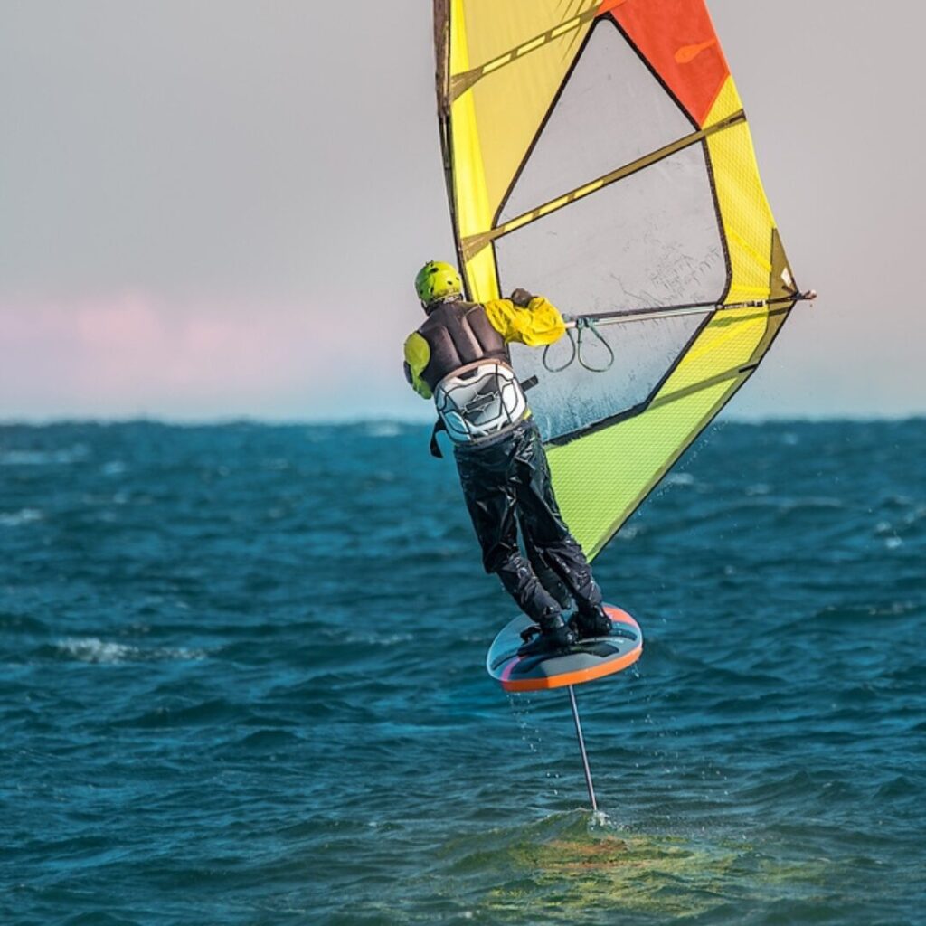 Windfoilen ist eine Weiterentwicklung des Windsurfens, ähnlich wie Kitefoilen aus dem Kitesurfen. Dabei steuert man das Board mit Mast, Gabelbaum und Segel. Das Halten des Gleichgewichts, das Erreichen von Geschwindigkeit und das Ausführen von Manövern sind in 30-40 cm Höhe über dem Wasser anspruchsvoller. Daher sollte man zunächst das Windsurfen sicher beherrschen, bevor man mit dem Windfoilen beginnt. Grundkenntnisse im Windsurfen sind notwendig, um das Windfoilen zu erlernen. Zudem ist es wichtig, zu wissen, wie man bei einem Sturz sicher landet, da das Foil Verletzungen verursachen kann. Windfoilen ermöglicht es, auch bei schwachem Wind mit hoher Geschwindigkeit zu surfen.